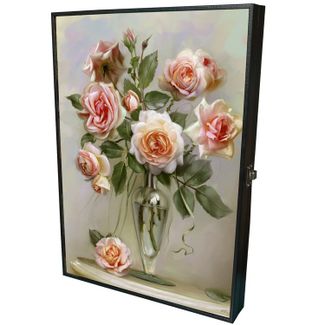 Настенная ключница-картина "Оттенки нежности" - это то, что нужно, чтобы освежить привычный интерьер в Вашей прихожей. Это большая декоративная ключница размером 41315 см см, вмещающая до 9 связок ключей (внутренний отсек 38,528,53,5 см) и оснащённая функциональным карманом для хранения писем, счетов или личных заметок.