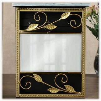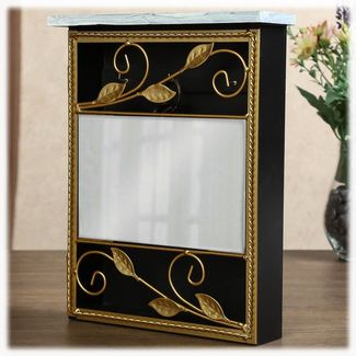 Деревянная ключница в прихожую размером 27*22*6 см с зеркалом 17,5*11 см на дверце (закрывается при помощи магнита) в обрамлении кованого узора оборудована 6 крючками для ключей (размер внутреннего отсека 25*18*4 см) и петлями для настенного размещения. "Стильный элемент" займёт достойное место в интерьере и доставит эстетическое удовольствие владельцу и гостям дома, к тому же став одной из самых функциональных вещей в прихожей.