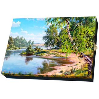 Настенная ключница-картина "Тёплый день" - это то, что нужно, чтобы освежить привычный интерьер в Вашей прихожей. Эта декоративная ключница размером 34245 см, вмещающая до 7 связок ключей во внутреннем отсеке 31.521.53.5 см, выполнена в виде картины на холсте поверх светлого корпуса (цвет белёного дуба).