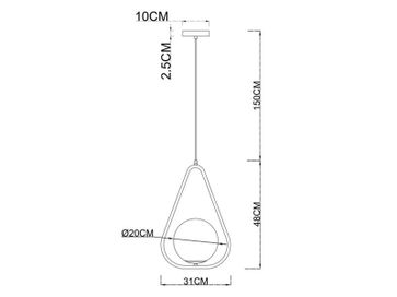 Характеристики: <br> Материал арматуры: металл.<br> Материал плафона: стекло.<br> Диаметр: 200 мм.<br> Длина подвеса: 1500 мм.<br> Площадь освещения: 3 кв. м.<br> Максимальная мощность лампы: 60 W.<br>