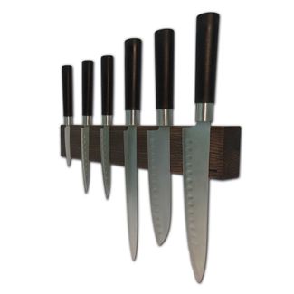 Настенный магнитный держатель для шести ножей. Изготовлен вручную из массива дуба. Пропитан натуральным маслом. Цвет - венге. Размеры 390х65х35 мм. Крепежные изделия в комплекте. None Страна производства: Россия Возможен самовывоз. Есть доставка.