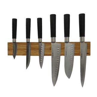 Настенный магнитный держатель для шести ножей. Изготовлен вручную из массива дуба. Пропитан натуральным маслом. Цвет - натуральный. Размеры 390х65х35 мм. Крепежные изделия в комплекте. None Страна производства: Россия Возможен самовывоз. Есть доставка.