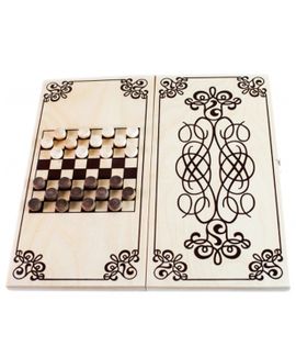 Нарды малые "Шеш-беш" - набор для игры, который включает деревянную доску с деревянными шашками. На внешнюю поверхность доски нанесен узорный однотонный рисунок. Нары - это древняя восточная настольная игра для двух игроков на специальной доске, разделенной на две половины. Цель игры - бросая кости и передвигая шашки в соответствии с выпавшими очками, пройти шашками полный круг по доске, зайти ими в свой дом и выбросить их за доску раньше, чем это сделает противник. Существуют две основные разновидности игры - длинные и короткие нарды.Нарды развивают стратегическое мышление, устный счет.Характеристики:Материал доски: деревоМатериал шашек: деревоРазмер, см: 40 х 20 х 3,4 Цвет: коричневый, бежевыйКомплектация: доска, шашки (15 «белых» и 15 «чёрных») None