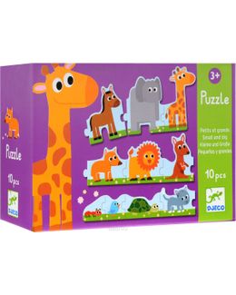 Пазл Djeco Большой - маленький - одновременно увлекательная игра и обучающее занятие, знакомящее ребенка с различными животными, а также с понятиями больше - меньше. Ребёнку необходимо собрать пазл от самого маленького муравья до самого высокого жирафа. Возраст ребенка: от 3 лет. Минимальная сумма заказа 1500 руб. Возможен самовывоз. Есть доставка.