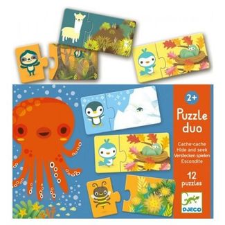 Пазл-пара Djeco Прятки учит малыша не только сообразительности во время его сборки, но и знакомит ребенка с окружающим миром. Пазл состоит из 24х деталей, из которых необходимо собрать 12 картинок, на одной стороне которых изображено животное, а на другой - место, где оно живет. Минимальная сумма заказа 1500 руб. Возможен самовывоз. Есть доставка.