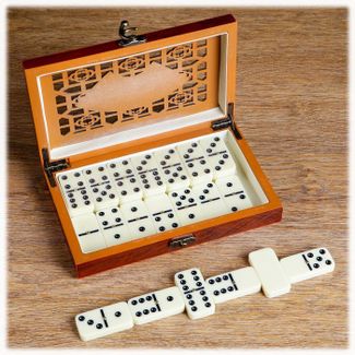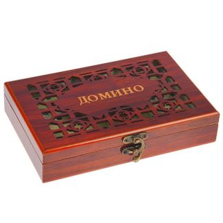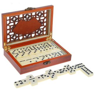 Домино "Чемпион" в шкатулке – прекрасный подарок для ценителя этой настольной игры. Бокс для хранения костяшек с резной крышкой на защёлке, несомненно, будет оценён любителями красивых вещей. Внутри шкатулка покрыта флоком - специальным бархатистым материалом, обеспечивающим высочайшую износостойкость. Костяшки домино "Чемпион" выполнены из ударопрочного пластика в традиционном варианте – цвета слоновой кости с черными точками. None Есть доставка.