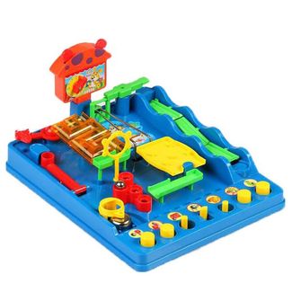 Одна из самых увлекательных детских настольных игр, хорошо знакомая старшему поколению. Игровое поле сделано в виде полосы препятствий, через которые должен пройти металлический шарик, чтобы достичь финишной отметки. Лабиринт, катапульта, неустойчивые платформы, тонкая струна – далеко не полный перечень испытаний, которые должен преодолеть шарик.