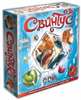 Что в коробке: 83 карты припасов 42 разноцветных кубика Правила игры на русском языке Новая продвинутая версия Свинтус 3D предлагает вам найти ответ на вечный вопрос: «Что сильнее: мозги или удача?». Здесь все не так, как в первоначальном варианте настольной игры, поэтому приготовьтесь к сюрпризам - приятным, не очень приятным и реально свинским. Карточками разбрасываться здесь не стоит, они в игре на вес золота. Для победы нужно собрать 7 карт одного типа, но на пути к успеху вас будут поджидать не только свинские поступки соперников, но и прожорливые звери-хомяки, которые сожрут все, что им попадется. Настоящие свинтусы любят обжираться Карточная колода в Свинтус 3D делятся на шесть стопок. Здесь есть карточки с припасами, которые бывают таких видов: Вкусные и аппетитные карты. Чтобы их получить, необходимо выбросить 4 игральных кубика с одним значением. Хотите кукурузу – выбросьте 4 двойки. Сытные карточки. Они дают удвоенные припасы, поэтому и кубиков для них должно быть пять с одинаковым значением. Специальные обжорные карты. Здесь главное – выбросить на кубиках определенную сумму, а какую именно – подскажут карты. Это ж каким счастливчиком надо быть, чтобы выбросить 5 четверок? Да никаким! Преимущество игры в том, что собирать нужную комбинацию можно по нескольким раундам. Например, кинули кости, и можете раскладывать их по картам припасов. Но только не сильно разгоняйтесь, ведь новых вам никто не даст, а в следующем туре вам нужно будет бросать имеющиеся у вас на руках кубики. Удачи для свиньи мало, нужны мозги! А вы как думали? Если просто кидать кубики и бездумно хватать все карты подряд, выиграть – точно не получится. Здесь нужна стратегия, которая поможет защитить наработанное добро от хомяков, а также хитрость и изворотливость, чтобы распорядиться выпавшей комбинацией наиболее выгодно. Постойте, это уже совсем другой Свинтус получается? Конечно, другой, не похожий на первоначальный классический вариант или его версию 2.0. Если посмотреть здраво – это