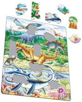 Пазл LARSEN Динозавры понравится всем юным любителям древних ящеров. Изображенные на картинке животные принадлежат к представителям фауны Юрского периода. При внимательном рассмотрении ребенок сможет отыскать не только вымершие виды, но и сохранившиеся до наших дней. Минимальная сумма заказа 1500 руб. Возможен самовывоз. Есть доставка.
