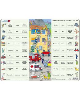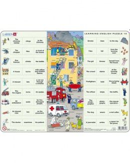 Пазл LARSEN Изучаем английский 10 Службы спасения состоит из 18 строк по 3 детали в каждой. Каждая строка представляет собой простое предложение с подлежащим, сказуемым и одним дополнительным членом. Подсказки можно найти на картинке в центре. Минимальная сумма заказа 1500 руб. Возможен самовывоз. Есть доставка.