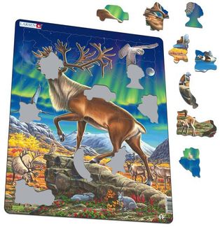 Пазл LARSEN Северный олень изготовлен из плотного трехслойного картона, детали при использовании не гнутся и не ломаются, а для удобства предусмотрена картонная подложка. Собрав картинку, ребенок сможет рассмотреть гордого северного оленя, изображенного на фоне северного сияния, а также некоторых более мелких животных и растения. Минимальная сумма заказа 1500 руб. Возможен самовывоз. Есть доставка.