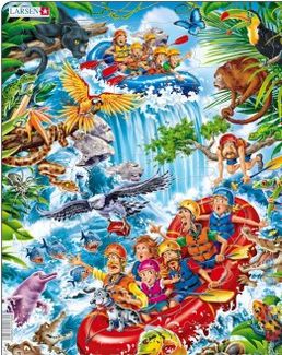 Пазл LARSEN В джунглях Амазонки - это довольно большая картинка с изображениями путешественников, сплавляющихся по горной реке на надувных лодках, и различных животных, которых можно встретить в джунглях. Минимальная сумма заказа 1500 руб. Возможен самовывоз. Есть доставка.