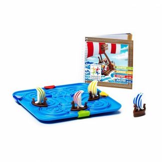 "Викинги"- игра, в которой корабли перемещаются по полю с помощью вращающихся деталей, которые изображают морские волны. Часто одна деталь блокирует движение других деталей, и только бесстрашный и наблюдательный вождь викингов сможет избежать водоворотов и привести свой корабль к родным берегам. В комплект игры входят: буклет с заданиями и ответами, игровое поле, 4 корабля, 4 стрелки, 9 вращающихся элементов.