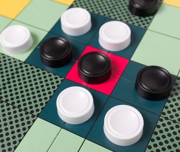 Для игры используются фишки 2 цветов – черные и белые. Игровое поле здесь необычное – с одной стороны 36 клеток, а с другой уже 49, что сказывается на сложности. В центре, на обеих поверхностях, имеется красная клетка, которая является нейтральной и может участвовать в любом сочетании. Участники, по очередности, могут выставлять 1 фишку на любую свободную клеточку. Для победы требуется выполнить 1 из 3 условий: