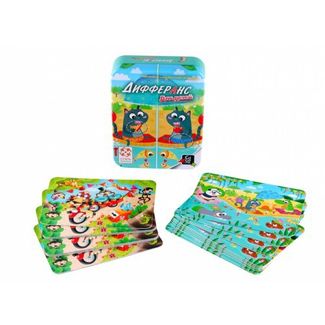 Дифферанс. Для детей – игра на наблюдательность, основанная на известном принципе «найди отличия». Перед каждым игроком находится колода карт с одной и той же картинкой. В начале игры одна карта с этой же картинкой помещается в центр стола в качестве главной. Все игроки одновременно пытаются найти два отличия между главной картой в центре стола и верхней картой своей колоды. Тот, кому удастся быстрее всех найти два отличи, кладёт свою верхнюю карту колоды поверх карты в центре стола – так появляется новая главная карта. Участник, быстрее всех избавившийся от своих карт, побеждает! None Есть доставка.