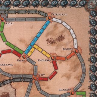 Билет на поезд: Европа — это игра о конкуренции нескольких железнодорожных компаний, одной из которых управляете вы, а другими — остальные игроки. Ваша задача — прокладывать маршруты между городами (причём выгоду приносят наиболее длинные), выполнять специальные задания, подбирать оптимальные пути для потока товаров — и срывать планы конкурентов. От холмов Эдинбурга до залитых солнцем пристаней Константинополя, от пыльных улочек Памплоны до берлинского вокзала на семи ветрах поезда везут пассажиров к новым приключениям. Станция назначения — вся Европа! Крупнейшие города Старого Света приветствуют путешественников начала XX века. Пробивайте туннели в Альпах, налаживайте паромную переправу на Чёрном море, стройте шикарные вокзалы в великих столицах старых империй! Каждое решение может сделать вас величайшим железнодорожным магнатом Европы. Итак, по вагонам! Что входит в игровой комплект: Игровое поле 240 пластиковых вагончиков 15 Вокзалов 110 карт составов 46 карт маршрутов 5 деревянных маркеров подсчёта 1 правила Минимальная сумма заказа 500 руб.