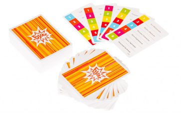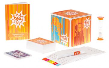 4-16 человек Партия 45-60 минут Думаете, что самая веселая игра для компаний — это "Мафия"? Нет, это самая захватывающая. А самая веселая — перед вами и называется "БУМ!". Это сумасшедший коктейль из драйва, интереса, командой игры и интеллектуального соревнования, в который можно играть везде. Как играть? Раздаются несколько карт с персонажами. Из них отбираются известные и остаются в общей колоде. За один ход команда имеет право вытащить карту из колоды, постараться объяснить ее и, в случае успеха, вытащить следующую карту — до тех пор, пока песок в часах не пересыплется. Та команда, которая лучше объясняет по итогам трёх раундов, выигрывает. Первый раунд — объяснение словами, например, "Мужчина в самом расцвете сил, который жил на крыше", второй — жестами (показать пропеллер, плюшки или что-то ещё), третий — одним словом: "пропеллер". Почему игроки не отвлекаются на чужом ходу? Потому что во время игровой партии используются одни и те же карты, то есть, в отличии от других патигеймов, все игроки находятся в игре даже во время хода противоположной команды: скорее всего, в следующем раунде или непосредственно на следующем ходу им придётся объяснять то, что не смогли объяснить оппоненты. Также важно запоминать персонажей, ведь они переходят из раунда в раунд. Для кого эта игра? Бум лучше всего подходит для вечеринок (шумная и на любую компанию), хороша для дороги (не требует стола), часто выбирается в качестве офисной (способствует тимбилдингу) и подходит детям для расширения кругозора. Учитывая, какая большая книга с персонажами есть в коробке, игру можно использовать и как семейно-образовательную. В комплекте 200 карточек, на которых написаны имена персонажей, всего 1200 имен 16 карточек для жеребьевки Песочные часы Правила игры со справочником и таблицей Маркер Мешочек для дороги None