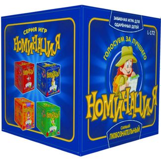 Игра "Номинация. Самый Любознательный" поможет ребенку максимально проявить свою сообразительность и эрудированность! Ее суть — ответить на как можно большее количество вопросов, усложняется тем, что в правильности нужно убедить своего соперника. Именно он будет оценивать то, как игрок справился с ответом. Каждый участник ставит баллы друг другу, и в результате один из них наберет больше всех. Одно из главных преимуществ "Номинации" в том, что дети воочию убедятся — лучше оценивать друг друга объективно, ведь это выгодно каждому из игроков. В игровом процессе задействуется мышление, смекалка и эрудиция. Но, игра есть игра — никому не будет скучно! Она хорошо подойдет для посиделок, наполнит дружескую атмосферу еще большим весельем вместе с небольшим духом соперничества. Могут участвовать от 3 до 4 игроков. Желательно, чтобы было 4 игрока, поскольку в этом случае игра протекает интересней. В комплекте 54 карт с 3 заданиями на каждой Кубик 54 жетоны для голосования Урна для голосования Инструкция Как играть? Цель игроков — справиться лучше всех, выполняя определенные задания, а определить, как ты справился, будут другие игроки голосованием. В наборе 54 карты с 3 заданиями. Напротив каждого задания указана цифра и цвет кубика и в зависимости от того, какая цифра выпадет на кубике, будет зависеть задание игрока. Красный цвет — это вопросы из области "Это интересно", на которые игрок должен попробовать ответить, зеленый цвет — это вопросы из области "География", синий цвет вопросы из области "История". Перед началом игры каждому игроку присваивается цвет: красный, синий, зеленый, желтый. Жетоны для голосования кладутся в центр стола лицом наверх. На жетонах обозначены очки: 1,2 и 3, наибольшая оценка — 3, а наименьшая….Череп, это даже не 0 очков, это минус 1 очко, но участвует этот жетон только в третьем туре. Игра состоит из трех туров. Первый тур —
