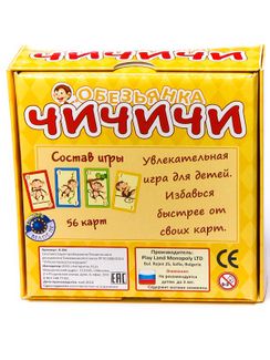 Игра Обезьянка Чичичи для детей старше 5 лет. Она помогает развить внимание, память, воображение. Настольная карточная игра Обезьянка Чичичи от Play Land это способ весело провести время в компании друзей или в семейном кругу. Задача игроков - избавиться от всех карт. кто сделает это быстрее, тот и победил в настольной игре Обезьянка Чичичи от PlayLand. Минимальная сумма заказа 1500 руб. Возможен самовывоз. Есть доставка.