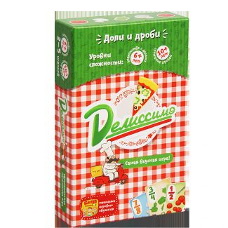 Сложная тема дробей подаётся в "Делиссимо" в очень доступной и аппетитной форме. Дети на образном уровне усвоят операции с долями и перейдут к дробям, не отвлекаясь от интересного занятия. None