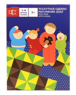 Лото-пазл Shusha Лоскутное одеяло - игра, рассчитанная на 1-4 игроков. Суть игры состоит в собрании шитье одеяла для ребенка, спящего в кроватке по образцу. Кусочки будущего одеяла высыпаются рубашками вверх, после чего игроки вытягивают себе их по одному и кто первый соберет целое одело, тот и выиграл. Кроме того, можно играть одному ребенку - собирать одеяло как пазл. Минимальная сумма заказа 1500 руб. Возможен самовывоз. Есть доставка.