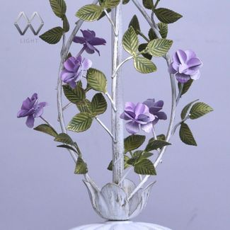 Воздушная весенняя настольная лампа из коллекции «Букет» - мечта романтичных особ. Матово-белое металлическое основание с эффектом патинирования в цвет золота декорировано элементами флористического стиля. Миниатюрные цветы фиалкового оттенка переплетаются с изящными зелеными листьями. Широкая семья люстра бра торшер настольная лампа позволит превратить интерьер в настоящий сад и расставить в световые акценты в едином стиле. Рекомендуемая площадь освещения порядка 2 кв.м. Минимальная сумма заказа 2000 рублей Страна производства: Германия