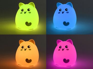 Ночник Кот с ярким дизайном в виде фигурки животного и мягким на ощупь покрытием софт-тач поможет ребенку побороть стресс и создаст атмосферу уюта и покоя. Модель оснащена сенсорной системой управления, которая позволяет регулировать яркость освещения. Ночник работает от встроенного аккумулятора и не требует доступа к электросети. В комплект входит USB-кабель для подзарядки аккумулятора.<br>
