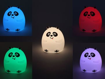 Ночник Панда в обворожительном визуальном исполнении создаст уютную и комфортную для сна атмосферу. Яркость и цвет освещения регулируются постукиванием или касанием, что приятно делать благодаря нежному на ощупь покрытию. Ребенок может мять силиконовый корпус ночника для снятия стресса. Модель работает от аккумулятора, который заряжается при помощи USB-кабеля, и не требует доступа к электросети.<br>