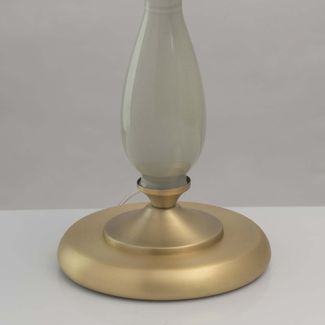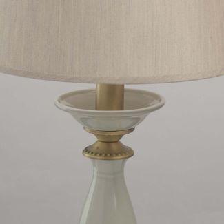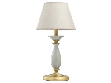 Металлическая ножка настольной лампы Магеллан 713030801 декорирована глянцевыми керамическими вставками, элегантный абажур из серого текстиля создает мягкое освещение.<br>