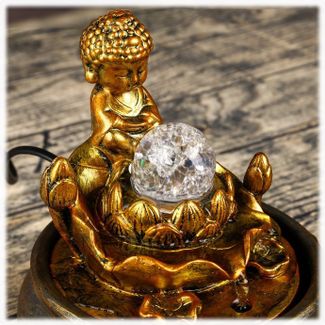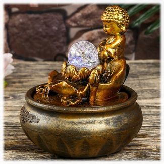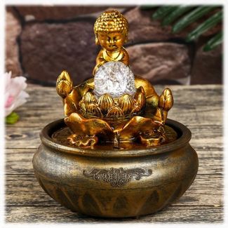Настольный декоративный фонтан "Золотой лотос" - уникальное произведение, призванное украсить и оживить Ваш интерьер. Этот атрибут комфорта подарит умиротворение и создаст атмосферу уюта в доме, а журчание воды успокоит нервы, поможет расслабиться и отвлечься от проблем.
