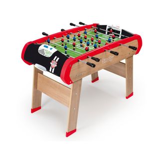 Футбольный стол для детей от 8 лет. В каждой команде по 10 игроков и 1 вратарю. Задача игроков забить как можно больше голов сопернику. В комплекте 2 мяча из пробкового дерева. Стол выполнен из дерева с элементами пластика. Размер игрушки: 1209084 см. None