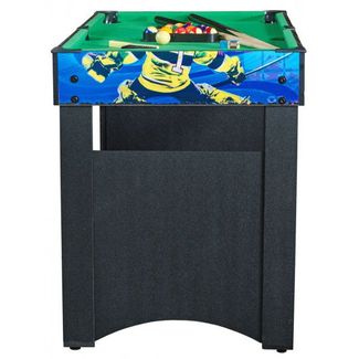 Яркий стол со стильным дизайном скрасит досуг любой компании, ведь он содержит в себе 8 различных игр на любой вкус. Небольшой размер стола позволит разместить его даже в городской квартире.Игры легко меняются. Для выбора нужной игры просто установите поверх основного поля нужную вам игровую поверхность. Благодаря этой функции стол не только легко трансформировать в нужную игру, но и легко хранить, т.к. все игры будут находиться в одном месте и экономить ваше пространство. К каждой из игр прилагается полный комплект аксессуаров: Бильярд (пул):Набор шаров для пула - диаметр 38 мм.Кий целиковый - 2 шт.Мел - 2 шт.Пластиковый треугольник - 1 шт.Щетка для чистки сукна - 1 шт.Аэрохоккей :Биты - 2 шт.Шайбы (62 мм) - 2 шт.Теннис:Ракетки - 2 шт.Мячи - 2 шт.Сетка - 1 шт.Настольный футбол:футбольные мячи - 2 шт.Набор для игры в подковы - 1 шт.Карты игральные - 1 уп.Набор для игры с метанием колец - 1 шт.Набор игральных костей - 1 шт.ХарактеристикиВес: 26 кгДиаметр шара, мм: 38ДхШхВ: 113 х 60 х 81 смИгровое поле: - футбол — 108 х 58 мм; - аэрохоккей — 96 х 47,5 мм; - бильярд 99 х 50 мм.Материал: MDFНоги: 66 х 8 мм; MDFОснова игрового поля: MDFРаботает от сети: НетРазмер упаковки: 104,5 х 66 х 16,5 см, 29 кгСтрана происхождения: КитайШтанги (материал): Ф12 мм, полые стальные. None