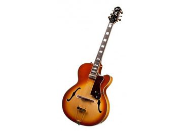 тип Hollow body, Jazz 20 лада звукосниматели - 1HB потенциометры - 1V-1T накладка на гриф - палисандр гриф - клен, вклеенный маркеры - бруски машинка - tune-o-matic/trapeze фурнитура - золото цвет - TAB None