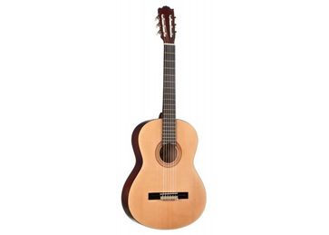 Форма корпуса - Классический Количество ладов - 19 Верхняя дека - Ель (шпон) Корпус - Ламинат красного дерева Гриф - Клен Накладки - Палисандр Цвет - Натуральный Классический колковый механизм Струны - Нейлон Полноразмерная классическая гитара, натуральный цвет None