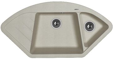 Угловая мойка с дополнительной малой чашей и крылом. Размеры мойки позволяют устанавливать ее в угловые блоки 90х90 и в прямой модуль от 80. Популярные цвета. Выполнена из искусственного камня. None