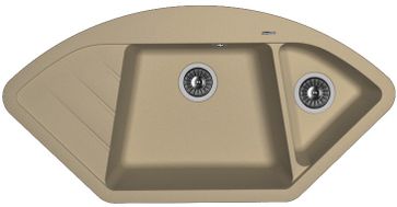 Угловая мойка с дополнительной малой чашей и крылом. Размеры мойки позволяют устанавливать ее в угловые блоки 90х90 и в прямой модуль от 80. Популярные цвета. Выполнена из искусственного камня. None