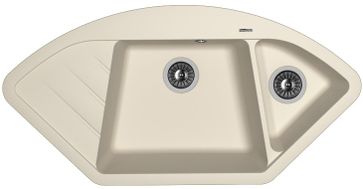 Угловая мойка с дополнительной малой чашей и крылом. Размеры мойки позволяют устанавливать ее в угловые блоки 90х90 и в прямой модуль от 80. Популярные цвета. Выполнена из искусственного камня. None