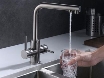 Смеситель OL-8021 обладает основной ручкой для подачи проточной воды и дополнительной ручкой для подачи воды из питьевого фильтра. Подключение к фильтру очистки воды стандартное. Высота смесителя: 290 мм и длина 210 мм. Выполнен из стали. None
