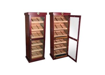Материал _испанский кедр, стекло. глубина: 44см. ширина: 66 см. высота: 178 см. вместимость:1350-1500 сигар Хьюмидорный шкаф на 1500 сигар. В комплекте: 6 деревянных полок для выкладки сигар, 12 передвижных перегородок, 12 стандартных увлажнителей, встроенный аналоговый гигрометр, замок и ключ. None