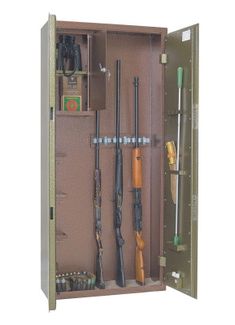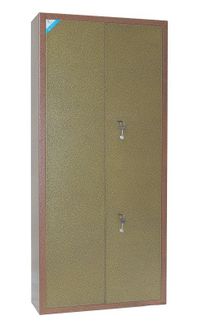 корпус сейфа толщиной 2 мм, дверь толщиной 2 мм.; на задней стенке корпуса расположены отверстия для крепления; сейф ОШ-6П односекционный; на 6 стволов; оснащен 3-мя съемными полками и отделением под патроны; ложементы — металлические держатели с резиновыми роликами, надежно удерживающими ствол ружья, а также комплектуется шомполодержателем и масленкой; внутренняя отделка - коврик; крепление к стене по 2-ум точкам; максимальная высота устанавливаемого оружия — 1480 мм.; два замка ЗАО «Про-Сам» г. Рязань или аналогичные замки другого производителя; цвет: медь/бронза. None