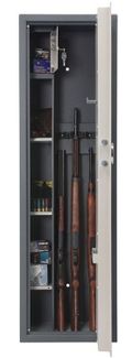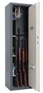 сейфы соответствуют требованиям ст.59 Постановления правительства РФ № 814 от 21 июля 1998 года «О мерах по регулированию гражданского и служебного оружия и патронов к нему на территории РФ»на дверь методом прямой фотопечати нанесен рисунок под заказ возможно нанесение на дверь индивидуально подобранного изображенияоборудованы патронным отделением, запирающимся на ключ и ложементами для ружейкомплектуются электронным замком PS 300 (Промет, класс A, ГОСТ, ECB-S)толщина металла лицевой панели - 5 мм, корпуса - 3 ммпатронное отделение (трейзер): 238х153х194цвет: корпус - графит (RAL 7024), дверь - рисуноктип покрытия: порошковое, дверь - прямая фотопечать4 ствола, МАХ. высота ствола - 1485 мм.3 полки в комплекте None