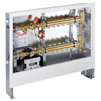 Шкаф Danfoss ШКСО-1-В4 правостороннее присоединение используется для присоединения двухтрубной квартирной системы отопления. Его комплектация включает обратную и подающую коллекторные гребенки, балансировочный клапан, расходомер и необходимую запорно-регулирующую арматуру. Рабочее давление - до 10 бар, рабочая температура до +90 С. None Страна производства: Дания