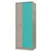 Молодежный и современный двухстворчатый шкаф, украсит детскую, молодёжную комнату своими яркими цветами. Большая дверь шкафа изготавливается в ярком и насыщенном цвете -Коралл или Аква, вторая дверка в цвете - Дуб Санома. Внутри шкаф оснащен антресольной полкой на всю ширину, штангой для плечиков и тремя вместительными полочками для одежды и белья.