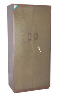 сейф МБ-100 сертифицирован на устойчивость к взлому по ГОСТ Р 50862-2005 п.п. 5.1., 5.2. и соответствует классу Н0 (ниже нулевого) устойчивости к взлому; корпус сейфа толщиной 2 мм, дверь толщиной 2 мм.; сейф односекционный, двухдверный, оснащен двумя съемными полками и двумя трейзерами; в двери установлен ключевой 8-ми сувальдный замок ЗАО «Про-Сам» г. Рязань или аналогичный замок другого производителя; цвет: медь/бронза. None