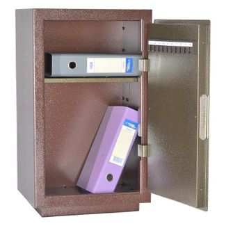 шкаф ШБ-1А сертифицирован по ГОСТ Р 55148-2012 (п.4.1, табл. 1), класс устойчивости к взлому S1; корпус сейфа толщиной 2 мм, дверь толщиной 2 мм.; сейф односекционный, оснащен одной съемной полкой; в двери установлен ключевой 8-ми сувальдный замок ЗАО «Про-Сам» г. Рязань или аналогичный замок другого производителя; цвет: медь/бронза. None