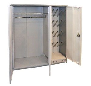 Внешние размеры, мм высота - 1900 ширина - 1800 глубина - 620 Ключевой замок Вес: 140 кг На 8 комплектов одежды None