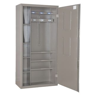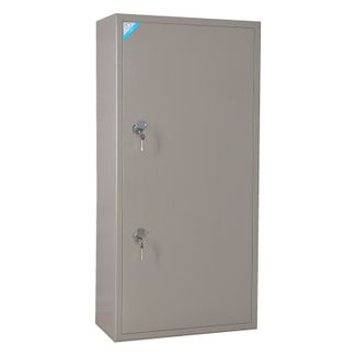 корпус сейфа толщиной 3 мм, дверь толщиной 3 мм.; сейф односекционный, на 3 ствола; высота ствола - 1380 мм.; кол-во полок - 8 шт.; внутри отделан ковриком; ложементы — металлические держатели с резиновыми роликами устанавливаются на регулируемой по высоте планке; на внутреннюю сторону двери устанавливаются 2 рамки под опись; два замка ключевых 8-ми сувальдных ЗАО «Про-Сам» г. Рязань или аналогичные замки другого производителя; цвет: серый. None