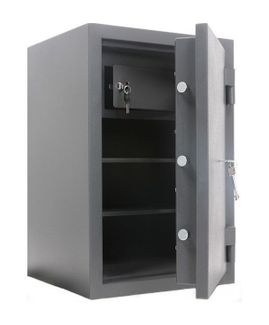 сварная конструкция, состоящая из наружного и внутреннего корпусов, пространство между ними заполнено специальным бетоном ригельная система запирания, диаметр ригеля 26 мм мощная дверь, толщина защитного слоя двери - 30 мм., общая толщина двери - 85 мм комплектуются ключевым замком Border 2 полки трейзер - внутренняя касса, 165x361x285 предусмотрена возможность анкерного крепления к полу (анкерный болт в комплект не входит) класс взломостойкости: класс S1 цвет: графит структурированный (RAL 7024) тип покрытия: порошковое None