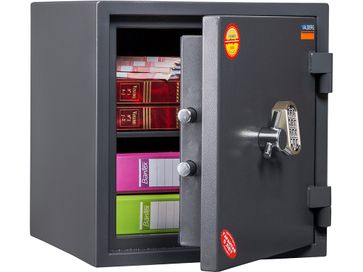 На сейф установлены термореактивные прокладки, которые в случае повышения температуры снаружи сейфа более чем на 140 градусов Цельсия быстро увеличиваются в объёме и закрывают все зазоры между дверью и сейфом, не давая горячему воздуху проникнуть внутрь и повредить содержимое. На крышку двери изнутри монтируется огнестойкий материал для дополнительной защиты. None