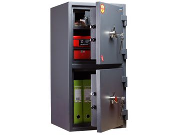 На сейф установлены термореактивные прокладки, которые в случае повышения температуры снаружи сейфа более чем на 140 градусов Цельсия быстро увеличиваются в объёме и закрывают все зазоры между дверью и сейфом, не давая горячему воздуху проникнуть внутрь и повредить содержимое. На крышку двери изнутри монтируется огнестойкий материал для дополнительной защиты. None